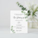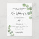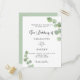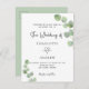 Un arrière - plan blanc décoré de sprigs de verdure d'eucalyptus. Personnalisez et votre nom et les détails de la cérémonie. Lettres de couleur noire. Retour : arrière - plan vert. Ajoutez votre propre URL à votre site mariage pour RSVP en ligne ou pour plus de détails.