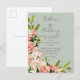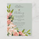 Invitation Carte Postale Mariage Floral Vintage Campagnard Vert Sauge Rose