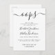 Oups ! Nous vivons des moments incroyables ! Ne vous inquiétez pas lorsque les choses tournent mal. Il est temps de changer de cap ! Vous aurez besoin d'un peu d'espace pour vous ressaisir, vous adapter et trouver des moyens créatifs de replanifier et peut-être même réinventer votre journée spéciale. Nous sommes là pour vous ! Ces cartes de report d'événement noir et blanc intemporelles comprennent un message texte fixe dans une police de caractères script chic avec une police de caractères sans empattement moderne pour votre message. Idéal pour toute occasion que vous devez reporter ou replanifier. Faites savoir à vos invités que vous devez reporter l'événement sans perdre votre calme avec ce design classique. Ne soyez pas abattu. Vous avez maintenant le temps de rendre votre nouvelle célébration encore plus conforme à vos rêves !