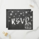 Modèles de cartes de réponse de mariage - Élégant pot Mason et guirlande lumineuse vintage avec fond de tableau noir grunge.