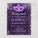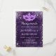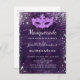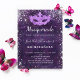 Invitation Carte Postale Mascarade violet argent parties scintillant poussi