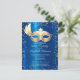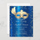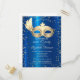 Invitation Carte Postale Masque Diamants Bleu Métal Mascarade