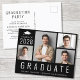 Invitation Carte Postale Minimal moderne 4 photo Black Graduation Party