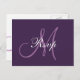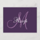 Elégante, simple, élégante carte postale Mariage RSVP avec un design de monogramme de police de script dans les tons violets. Customisez avec votre monogramme et vos renseignements personnels. Elke Clarke© Magasin de contact pour différentes couleurs arrière - plans.