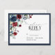 Invitation Carte Postale Navy Blue Bourgogne Floral Aquarelle Script RSVP