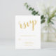 Suite de Faire-part de mariage moderne Script blanc et or : Carte postale RSVP avec titre en écriture dorée moderne avec détails en or moderne sans serif police sur arrière - plan blanc. Remarque : Les détails du papier sont simulés dans l'illustration. Il n'y aura pas de métal sur ce produit.