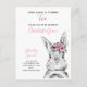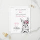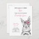 Votre petite fille a deux ans ! Invitation vos invités spéciaux avec cette adorable carte postale d'invitation avec un lapin lapin à lapin d'aquarelle peint à la main, rose, noir et blanc. Le nom du bébé, "Turning Two" et la date sont en écriture manuscrite rose, et personnalisées dans un chic moderne noir sans serif. Copyright Invitations élégants, tous droits réservés.