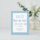 Motif tendance Blue and White Snowflake Nom de l'entreprise Fête. Modèles faciles à remplir pour cette Enregistrer la date : ajoutez tous vos détails. Inclut une adresse de retour pratique. Carte postale de l'entreprise pour les événements de marketing d'affaires pratiques.