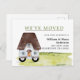 Fun house sur roues WE'VE MOVED carte postale avec nouvelle adresse et avis ouvert.