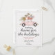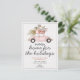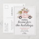 Informez vos proches et dites-leur joyeuses fêtes sur la même carte avec notre carte postale "Nouvelle maison pour les vacances". Le design présente une voiture vintage avec un sapin de Noël et des cadeaux sur le toit. Personnalisez avec vos informations recto et verso.