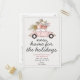 Informez vos proches et dites joyeuses fêtes sur la même carte avec notre carte postale "Nouvelle maison pour les fêtes". Le design présente une voiture vintage avec un sapin de Noël et des cadeaux sur le toit. Personnalisez avec vos informations recto et verso.