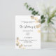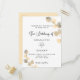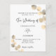 Un arrière - plan blanc décoré de sprigs d'eucalyptus dorés. Personnalisez et votre nom et les détails de la cérémonie. Lettres de couleur noire. Retour : arrière - plan d'or