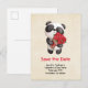 Invitation Carte Postale Ours Panda avec Bouquet de Roses Save the Date