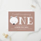 Notre petit ours transporte une première carte postale d'invitation à l'anniversaire de naissance. Cette invitation est brun clair et blanc avec le mot "One" en gros caractères avec une illustration faciale d'ours polaire comme première lettre du mot. Customisez simplement cette carte postale, ajoutez-la à votre panier et joyeux anniversaire à votre merveilleux bébé! Ours Turner un animal mignon Premier anniversaire Invitation Carte postale Conception des jours fériés | ©Melissa Patton - Artiste/Illustrateur