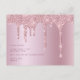 Ce design d'invitation moderne présente une texture métallique à paillettes rose gold qui goutte et une police de calligraphie élégante.
