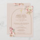 Belle pampas fleurie aquarelles et arche chic encadrent vos premiers détails de communion sainte en typographie or stylisée sur un arrière - plan rose roux doux. Conçu par Thisisnotme©