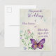 Invitation Carte Postale Papillon pourpre à aquarelle personnalisée