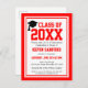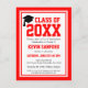 Cette carte postale de l'année de classe rouge et blanche Graduation Party Invitation est une excellente façon de célébrer le baccalauréat ou le diplôme d'études supérieures. Personnalisez ceci avec le nom, l'école, l'année et les détails de la fête. Cet invitation présente une typographie audacieuse aux couleurs de l'école rouge avec une bordure rouge et blanche.