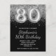 Créez votre propre carte postale d'invitation 80e anniversaire moderne avec un art numérique de numéro de bulle de faux papier. Envoyez un message au créateur si vous avez besoin d'un invitation pour un âge différent créé. L'arrière - plan de glamour girly présente des parties scintillant décoratives en faux argent brillant sur une couleur noire solide. Les effets de texte brillant, parties scintillant et feuillu de luxe sont créés avec des éléments artistiques qui s'impriment comme une photo. Vous pouvez customiser la calligraphie fantaisiste et moderne tous les styles de police casquette et la couleur noire.