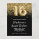 Invitation Carte Postale Parties scintillant en or brillant Sweet sixteen e