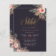 Préparez-vous à une fête d'anniversaire surprise avec ce design élégant. Cette invitation présente des bouquets de rose aquarelle dans les coins supérieur droit et inférieur gauche avec un arrière - plan noir profond, élégant script de style en lettrage parties scintillant or pour le "Shhh!" avec un point pois rose et motif floral sur le dos. Ajoutez vos propres détails en cliquant sur le bouton "personnaliser ce modèle" et en tapant dans les zones de texte et rappelez-vous, restez silencieux !