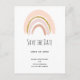 Enregistrez la carte postale de la date avec une jolie et élégante illustration arc-en-ciel. Diverses nuances de rose pastel et de parties scintillant faux or composent ce joli petit arc-en-ciel design.