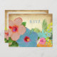 Carte postale PixDezines rose rsvp et bleu pastel... avec des feuilles hibiscus et monstères dans clair et coloré de fleurs tropicales sur parchemin gris vintage pour ce look vintage. Cette année, nous avons ajouté des hibiscus vérifiés. Très dynamique et joyeuse pour un mariage luau ou plage, graduation, réunion de famille, fête d'anniversaire, et al... Vous pouvez copier et coller pour plus de fleurs, ainsi que changer la couleur et la police arrière - plan. com. Tous droits réservés.