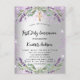 Une invitation moderne, élégante et glamour pour une première communion sainte. Un arrière - plan faux argenté avec parties scintillant violette, étincelants, fleurs de lavande, fleurs et végétation d'eucalyptus. Le nom est écrit avec un script de style moderne écrit à la main. Personnalisez et ajoutez vos détails.