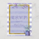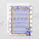 Conception de carte postale RSVP pour mariage adorable et modifiable avec un magnifique bouquet de fleurs en lavande et un vase avec fleurs de champs et fleurs de lavande sur un arrière - plan rayé violet et blanc avec cadre en métal doré. Tasses personnalisables en papier Plaques, Étiquettes de vin, invitations de mariage, Enregistrer la date Invitations, instructions, hébergement et cartes d'information. Tout ce dont vous avez besoin pour votre plus belle journée dans la vie. C'est le meilleur et Numéro 1 Design pour votre journée spéciale. Invitation personnalisée pour les mariages romantiques. Créé avec amour par UtART