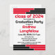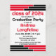 Envoyez cette carte postale Invitation Graduation Party Bars rouges et noirs à votre famille et à vos amis. Personnalisez avec le nom de votre diplômé, l'année de cours et les détails de votre fête. Ces invitations aux couleurs rouge et noir de l'école sont une façon élégante de montrer votre esprit scolaire.