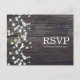 Invitation Carte Postale Réponse Baby's Breath Floral & Bois Rustique Foncé