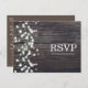 Invitation Carte Postale Réponse Baby's Breath Floral & Dark Rustic Wood