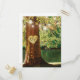 Cartes de réponse de mariage d'arbre printanier avec un cadre romantique de forêt et de lac avec un arbre à baies rouges, un cœur d'amour sculpté avec le mot « rsvp », des lumières scintillantes en fil et un modèle de réponse de mariage moderne.