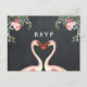 Une carte de réponse de postcard avec un design floral et flamant rose avec un fond d'effet tableau noir. Utilisez cette carte RSVP coordonnée pour encourager vos invités à répondre rapidement ! Modifiez les champs de texte disponibles pour répondre à vos besoins. Le recto et le verso peuvent être modifiés. D'autres articles et papeterie de cette collection, tels que des autocollants de faveur et des invitations .. Parfait pour les fêtes de plage / été / tropicales, mariages et douches / événements.