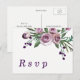 Invitation Carte Postale Réponse de mariage floral rose plum pourpre romant