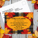 Invitation votre famille préférée loin et large à une famille et Flannel Plaid réunion en famille avec cette carte postale d'invitation chic et dynamique. Ce design présente un motif de feuilles d'automne avec plaid, parfait pour un rassemblement d'automne élégant et festif. Le script audacieux annonce "Famille et Flannel", écrivez tous les détails importants sur le dos. Cette carte postale personnalisable est un moyen simple et élégant d'envoyer vos invitations. Ajoutez simplement les détails de votre événement personnel, et vous êtes prêt à partir !
