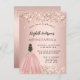 Invitation Carte Postale Robe de parties scintillant en or rose Quinceanera
