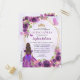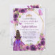 Glam Girly foncé violet violet or Parties scintillant étincelle Floral Rose papillon Princesse Tiara Crown Quinceañera Invitation