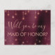 Burgundy Marsala - Rose Gold Faux Metallisé Élégant Étincelle Confettis et Guirlandes Lumineuses Veux-tu être ma demoiselle d'honneur? Carte postale. Cette carte Marsala et Rose Gold Veux-tu être ma demoiselle d'honneur fait partie de la collection de mariage Rose Gold et Burgundy. Veuillez contacter le designer si vous souhaitez des articles assortis personnalisés.