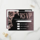 Élégantes, chic et simples cartes de réponse avec des fleurs et une typographie modernes en faux or rose pailleté sur fond noir à la mode. Ce design classique et sophistiqué est parfait pour tout événement élégant et tendance, y compris les mariages et les occasions quotidiennes. Personnalisez avec votre propre message au recto ainsi qu'un monogramme personnalisé au verso. Conception d'impression photo.