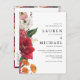 Invitation Carte Postale Rouge Amaryllis et automne Floral QR Code Mariage