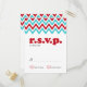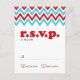 Invitation Carte Postale Rouge moderne et Aqua Chevron & Lovebirds RSVP