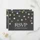 Carton de RSVP pour une fête avec tableau noir, or et confettis blancs. Articles assortis disponibles.