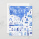 Parfait pour votre mariage de rêve sur l'étonnante île grecque de Santorin. Doté d'une aquarelle originale de Nic Squirrell de la ville pittoresque d'Oia dans un schéma classique de couleurs bleu et blanc, capturant l'essence de cette île à couper le souffle. Que vous planifiez une cérémonie intime ou une grande fête, cette carte RSVP sur le thème de Santorin apportera une touche de sophistication et d'élégance à votre journée spéciale. Modifiez le texte pour customiser.