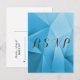 Carte Postale Sharp et moderne Jewel Tones Mariage Response avec un arrière - plan triangle géométrique bleu funky. Ce design chic et simple est un choix unique pour un mariage moderne. Facile à customiser avec vos détails mariages. Cliquez sur "Customiser" pour trouver d'autres options de personnalisation.