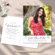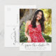 Assurez-vous que tous vos amis et proches pourront célébrer la réussite de votre fille en fin d'études ! Envoyez cette carte postale « Save the Date » photo personnalisée, féminine, époustouflante, simple et moderne pour un événement inoubliable. Un visuel amusant et ludique avec une écriture manuscrite grise douce et des cœurs mignons et ludiques, ainsi que son nom, son année de promotion et son école, sur une bande blanche. Au recto, ajoutez la photo de votre choix et personnalisez le texte avec le nom de votre diplômée, son école et son année de promotion. Votre message personnalisé et votre adresse de retour ornent le verso. Des invitations, des cartes de remerciement, des décorations de casquette, des plaques et d'autres cadeaux de fin d'études assortis sont également disponibles dans cette collection tendance et élégante. Garantit d'ajouter une touche de fun élégante à son événement spécial !