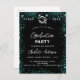 Invitation Carte Postale Script de parties scintillant turquoise noire vert
