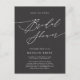 Script élégant Gris Charcoal Moderne minimaliste carte d'invitation à la douche nuptiale. Célébrez votre journée spéciale avec cette belle et élégante carte de faire-part de mariage pour embellir votre occasion spéciale. Tous les textes sont pré-arrangés pour que vous personnalisiez facilement et rapidement avec vos propres détails.