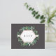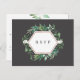 Cette carte postale botanique RSVP chic vert et blanc à l'aquarelle avec des choix de repas ou d'entrée présente d'élégants accents géométriques faux en cuivre sur un arrière - plan riche de couleur terre. "RSVP" apparaît dans le centre, avec les détails de votre réponse complète à l'arrière, ainsi que votre adresse postale de retour. Conçu pour correspondre à notre collection de mariages à serre.