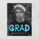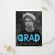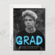 Carte postale d'invitation à la remise des diplômes avec la photo verticale du diplômé avec "Grad" dans un style de typographie peinture bleu ciel. Personnalisez le front en ajoutant le nom du diplômé, le nom de l'école et l'année de fin d'études. L'invitation moderne de la fête de remise de diplômes s'inverse pour afficher votre adresse de retour et les détails de la fête de remise de diplômes.